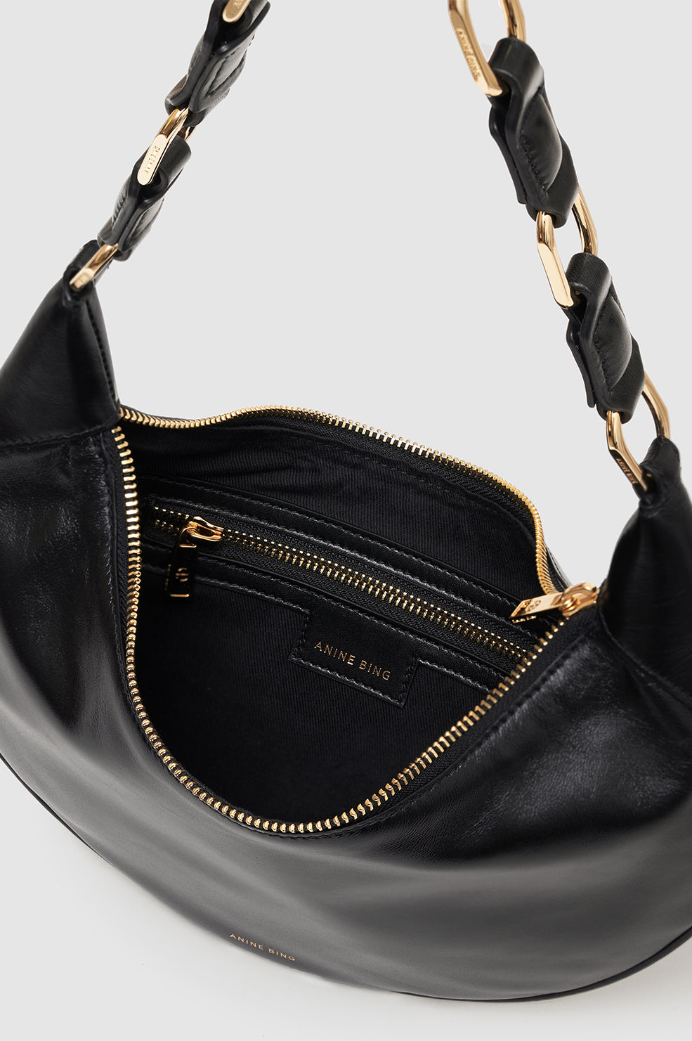 The Kate Hobo Bag is crafted from smooth 100% leather with a slight sheen. Its small, hobo silhouette features a strap made of interlocked signature links in gold-tone hardware. This night-out staple includes a zipper closure and fully lined cotton-twill interior with a single zipper pocket to keep your belongings close at hand.