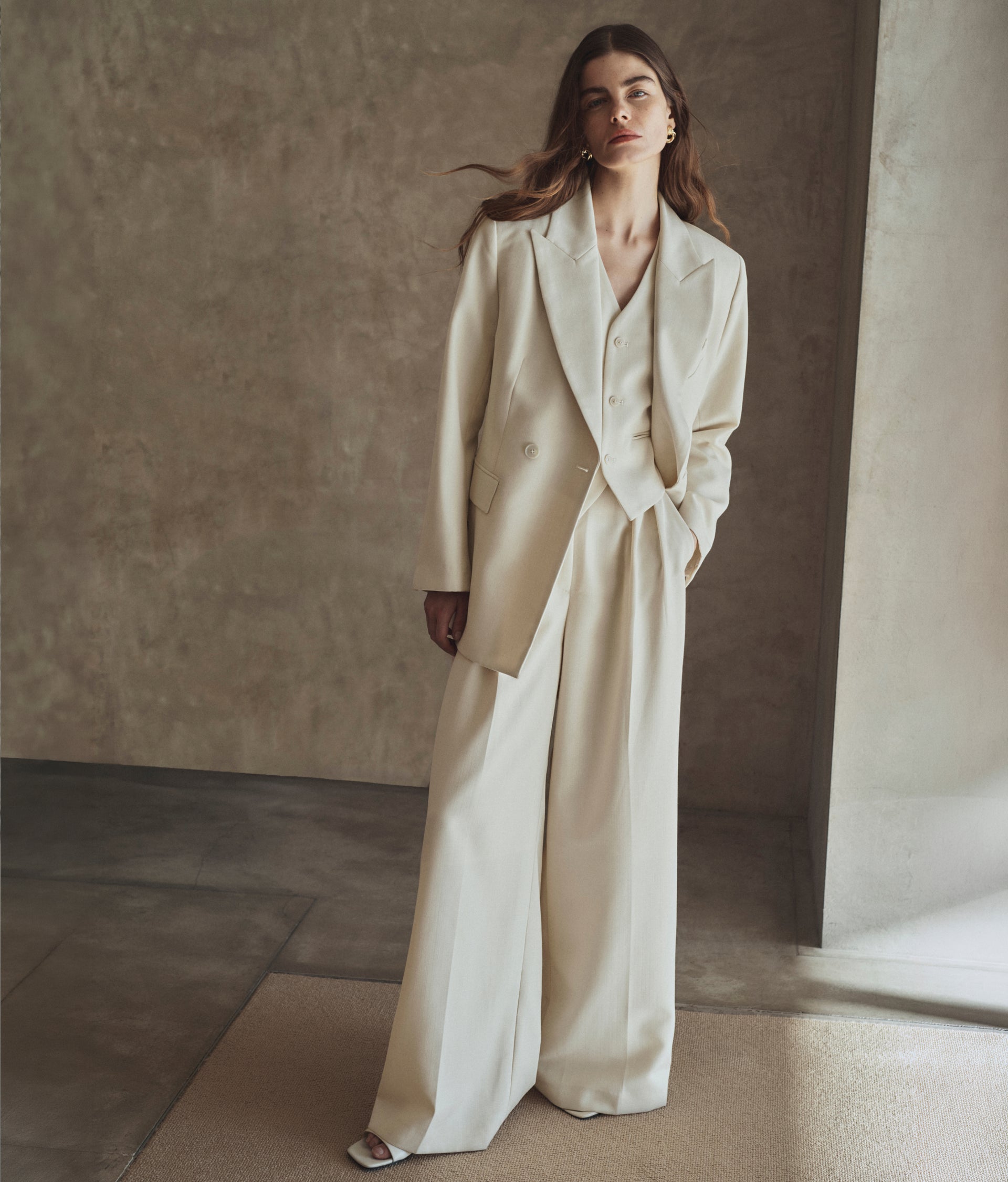 ANINE BING Mario Vest - Ecru - front view ANINE BING Mario Vest - Ecru - on model front