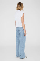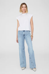 An elevated muscle tee crafted from a heavyweight cotton vintage jersey featuring a mock neckline and folded detailing at each sleeve. Finished with a small stitched ANINE BING monogram charm at the wearer's bottom-left hem.