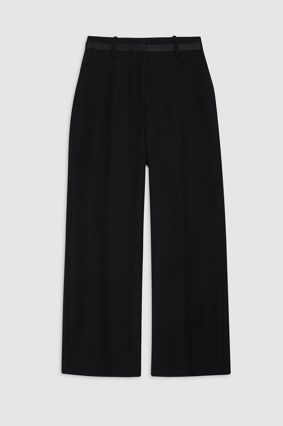 The Louisa Trouser is a modern tuxedo pant crafted from midweight 100% wool with a clean look and soft hand. This elevated style is full lined with inset satin details and a pleat crease down the front. Complete with a front zip opening with a hook and bar closure and side seam pockets.