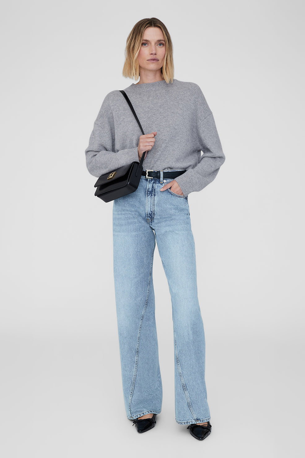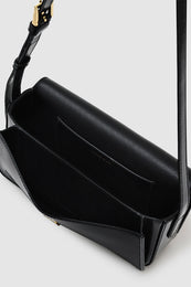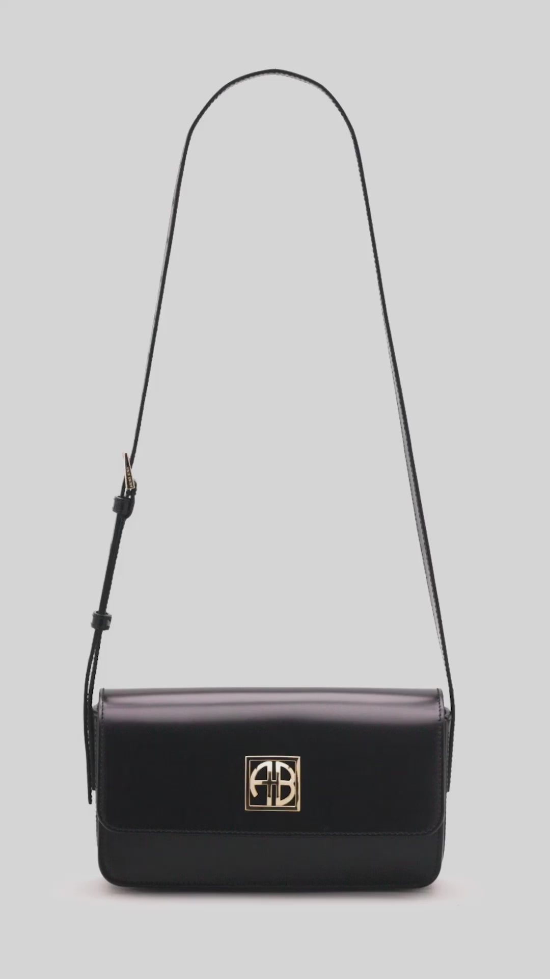 A timeless essential crafted from 100% spazzolato leather in black with a high-shine finish. The Elly Crossbody Bag is adorned with our signature monogram framed in exceptional gold hardware. Its practical, everyday construction includes a magnetic flap closure, separated front and main compartments, and a single interior slip pocket. Complete with an adjustable strap and custom square buckle.