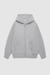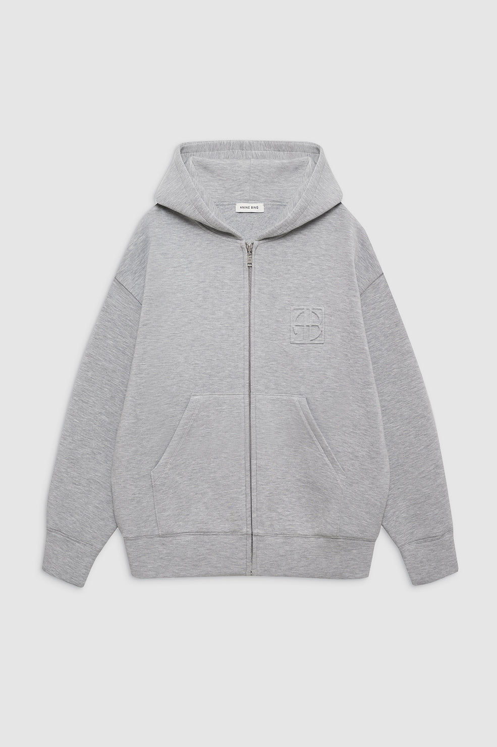 The Bond Zip Up Hoodie Framed Monogram is constructed from a heavyweight scuba fabrication with a slick, soft hand. This elevated yet relaxed casual is fully lined and features dropped shoulders, a branded front zipper pull, and functional kangaroo pockets. Finished with an embossed, framed ANINE BING monogram at the wearer's left chest.
