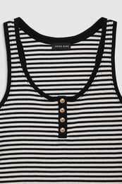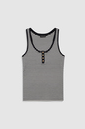 A modern, Henley-inspired tank top made from a heavyweight cotton-spandex blend with an all-over ribbed texture and a soft hand. This elevated basic features a round neckline and gold monogram snap buttons along the front placket.