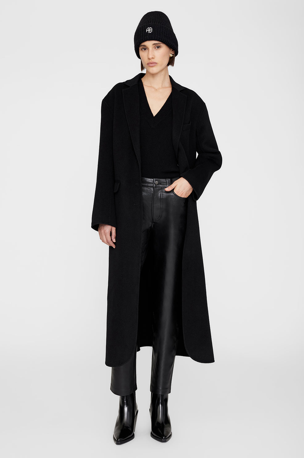 A cold-weather accessory made from a luxurious alpaca-wool yarn with all-over, vertical cardigan-stitch detailing. Its folded brim is finished with a small leather patch debossed with ANINE BING branding.