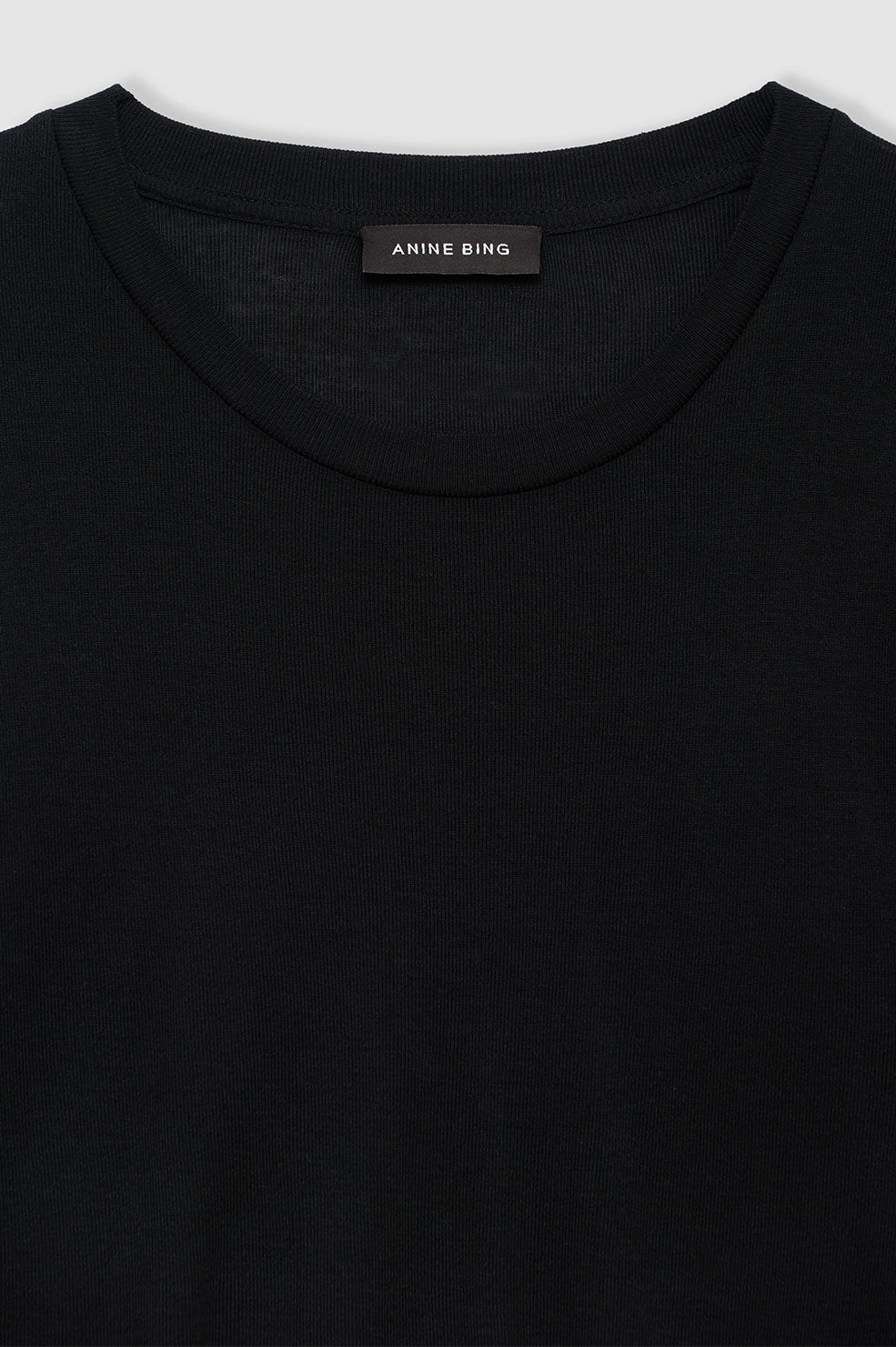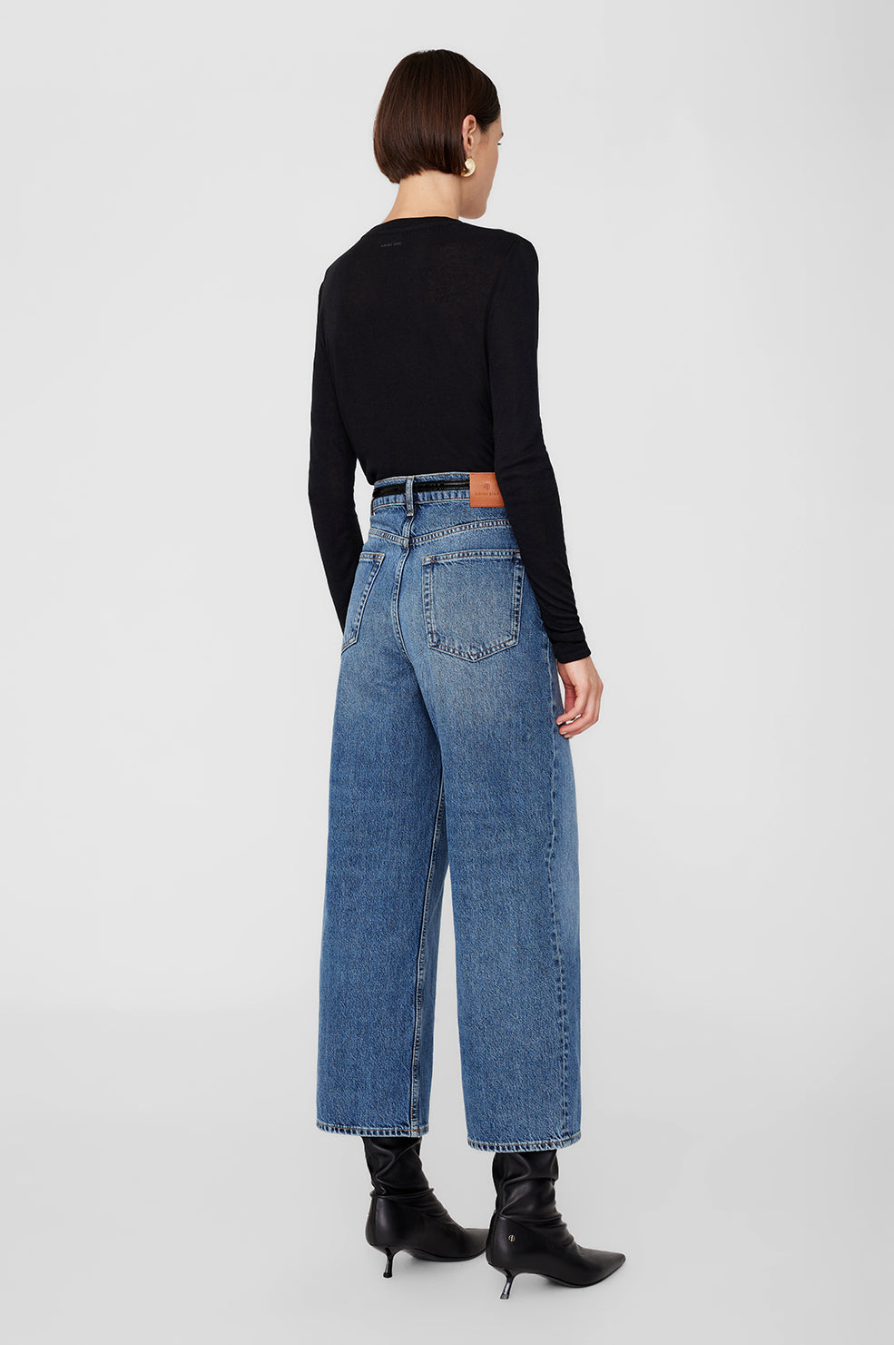 A basic long-sleeve crewneck constructed from a lightweight modal-cashmere jersey blend prioritizing ease and comfort. Finished with a small hand-tacked ANINE BING monogram charm at the wearer's bottom-left hem.