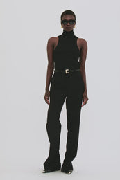 The Drew Pant is made from a midweight wool blend suiting fabrication with a slight drape and matte texture. This style is half lined to just below the wearer's knee and finished with a slit along the back of each leg opening.