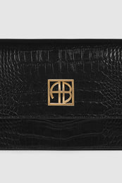 A timeless essential crafted from shiny 100% leather stamped with faux croco-embossed texture. The Elly Shoulder Bag is adorned with our signature monogram framed in exceptional gold hardware. Its elegant, everyday construction includes a classic shoulder strap, magnetic flap closure, separated front and main compartments, and a single interior slip pocket.