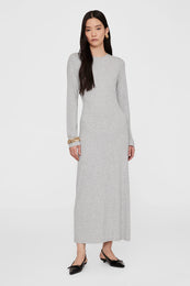 A basic long sleeve maxi dress crafted from a lightweight nylon-spandex fabrication with an all-over micro ribbed texture and natural drape. Its comfortable silhouette features a clean crew neckline with a small hand-tacked ANINE BING monogram charm.