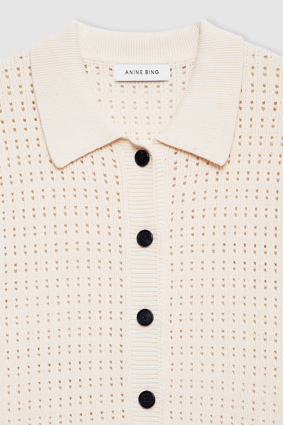 The Alexis Sweater is made from an organic cotton-viscose crocheted fabrication in cream. This versatile separate features a tailored collar and faux horn buttons down its center-front placket.