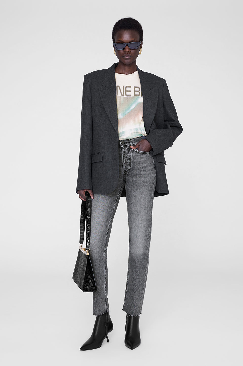 The Cade Tee is cut for a boxy fit with a loose neckline and a slightly shorter body than the Lili Tee. Take your true size.