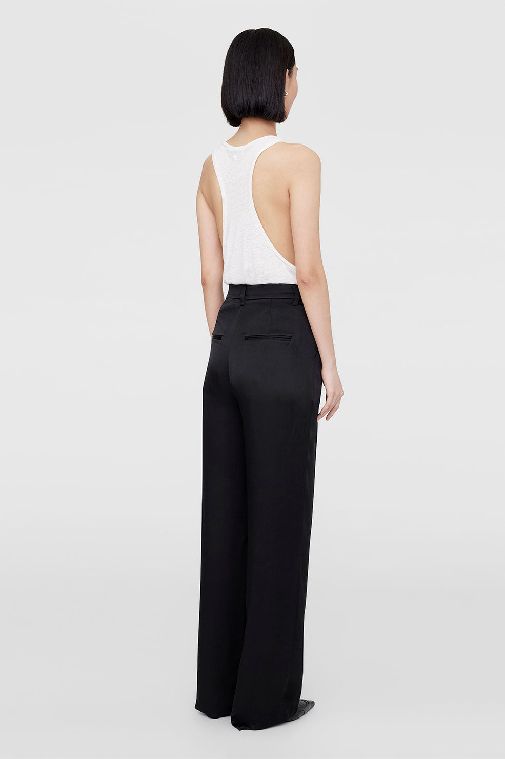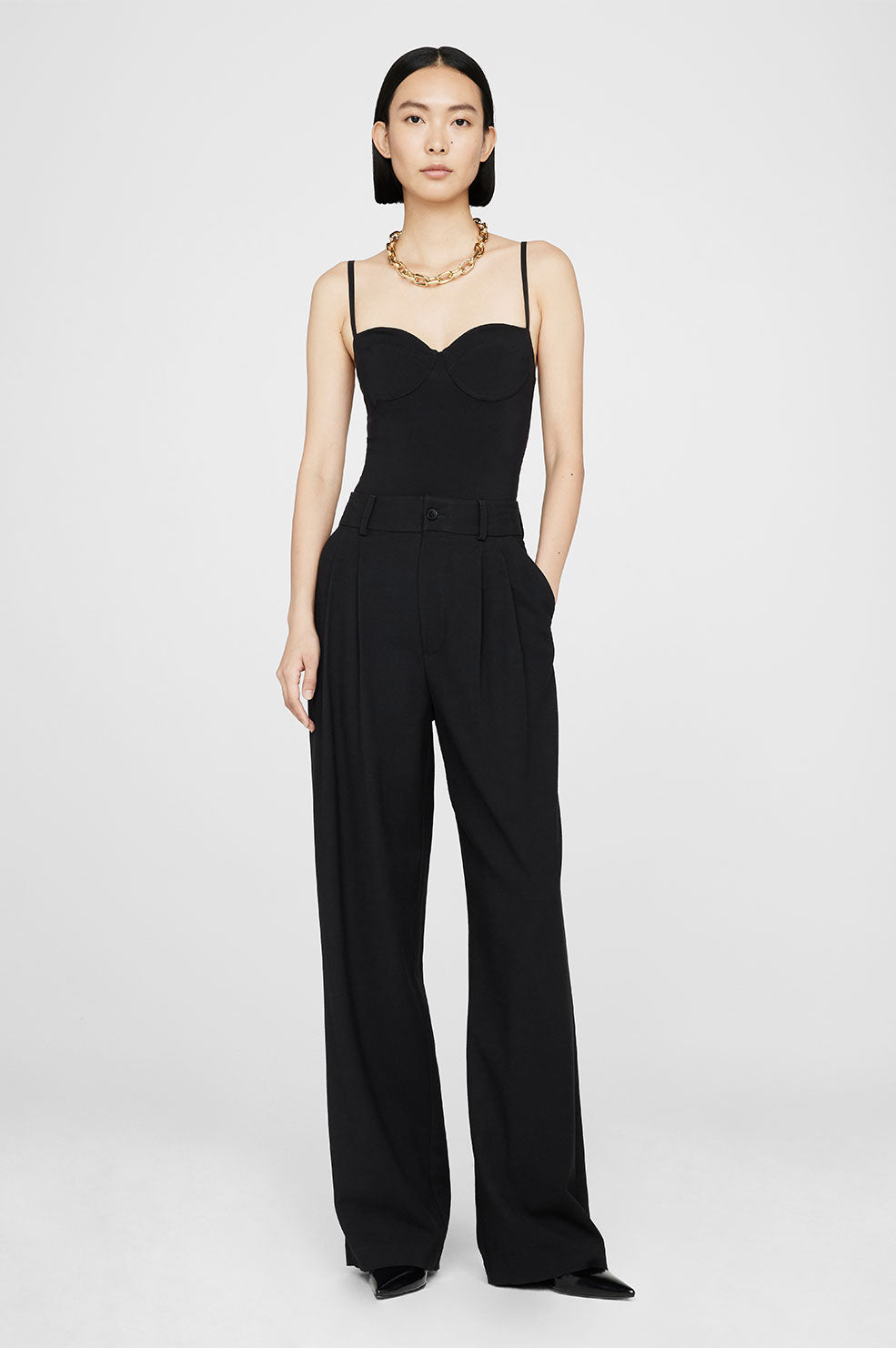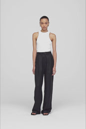 • The Carrie Pant is cut for a high-rise fit with a true waist, wide leg, and full-length inseam. Take your true size.