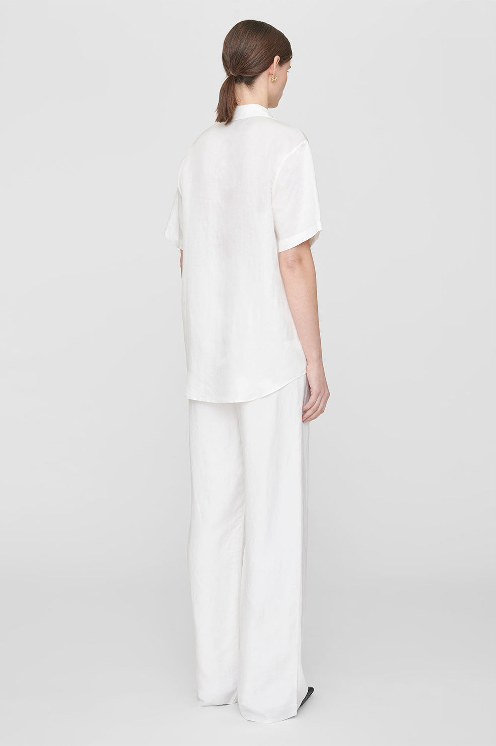 The Carrie Pant is cut for a high-rise fit with a true waist, wide leg, and full-length inseam. Take your true size.