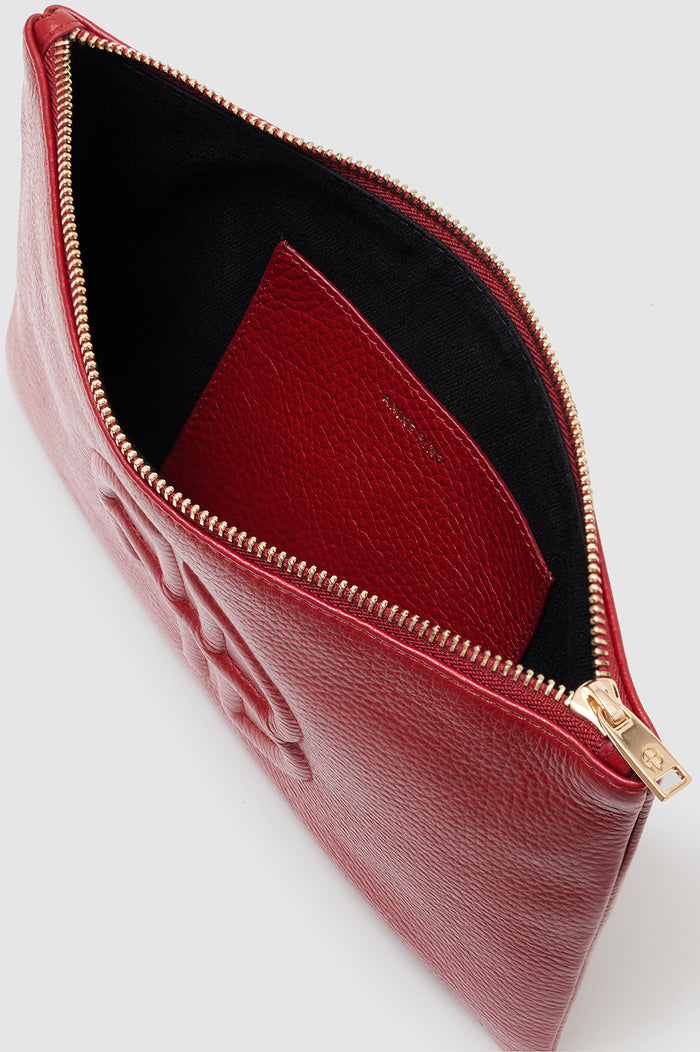 The Lili Pouch is a modern essential crafted from soft 100% pebbled leather with a matte finish. This day-to-night accessory features a fully lined cotton-twill interior and slip pocket, and finished with our signature embossed ANINE BING monogram at the center front.